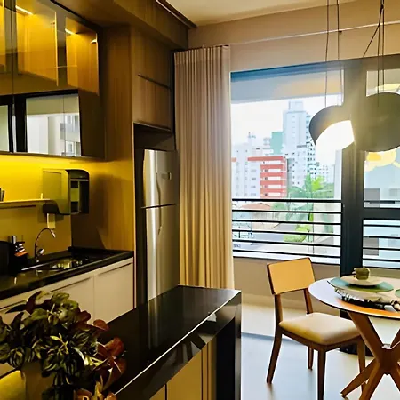Studio Luxy - A 2 Minutos Do Center Shopping has a sitting area and a kitchen, and comforts such as air conditioning.